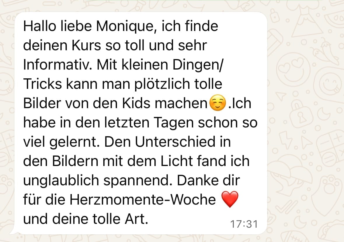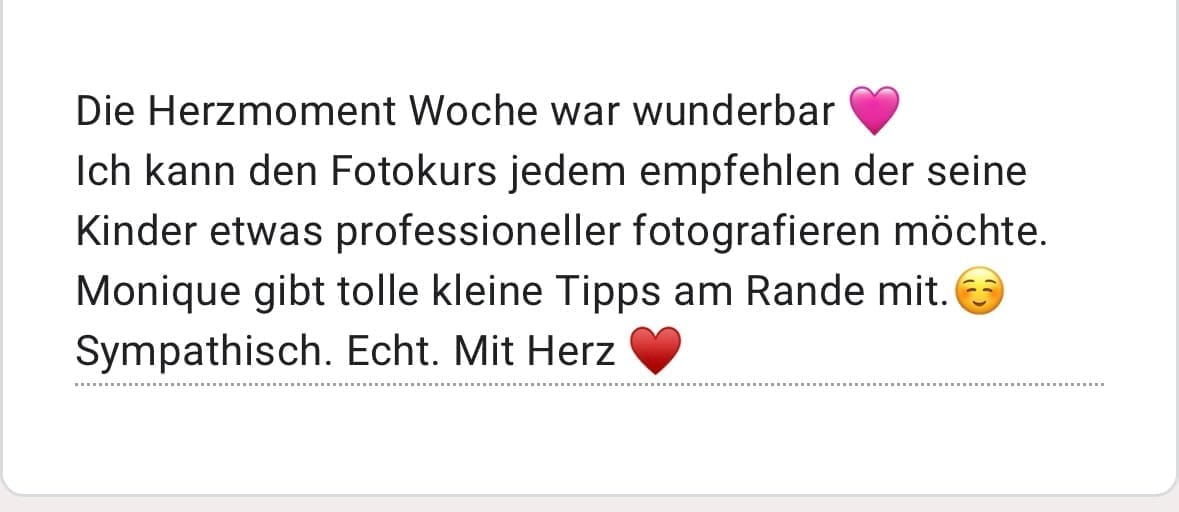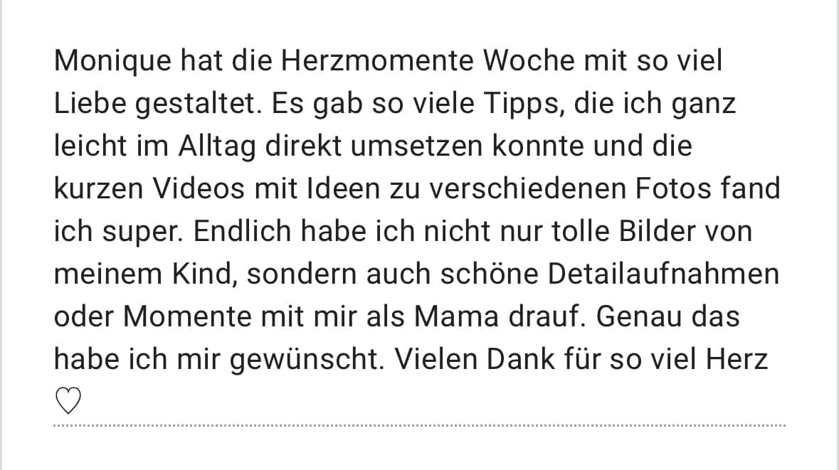 Ich freue mich sehr, dass du im Frühjahr 2026 bei Mama knipst - Herzmomente dabei sein möchtest. Ich halte dich auf dem laufenden und schreibe dir sobald der Kurs startet. Auf schöne Erinnerungen!